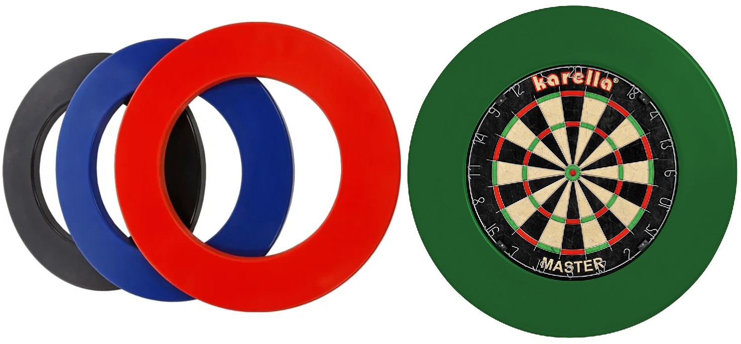 Surrounds zijn misschien wel het populairste accessoire voor darters, of ze nu beginnen, gevorderd of professioneel zijn. De Karella Catch Ring PU biedt optimale bescherming voor muren en vloeren. De catch ring heeft een diameter van 45 cm. Dit betekent dat de sportieve en slank ogende catch ring zonder veel moeite aan elk standaard dartbord kan worden bevestigd. De Karella Surround is gemaakt van hoogwaardig PU-materiaal en heeft een breedte van 12 cm. Het materiaal is met behulp van een speciaal ontwikkeld productieproces tot de ideale dichtheid samengeperst. Deze unieke materiaalsamenstelling zorgt ervoor dat de stalen darts bij een mislukte worp in de ring blijven steken en niet door de catch ring heen dringen. Dit garandeert bescherming van de muur en vloer en maakt een eenvoudige verwijdering mogelijk. Bovendien blijven er na verwijdering nauwelijks zichtbare sporen achter op het gladde oppervlak van de eendelige catch ring.